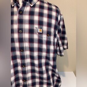 CARHARTT SHORT SLEEVE SHIRT MENS RELAXED FIT CHEST POCKETS PLAID NAVY/GRAY 2XL