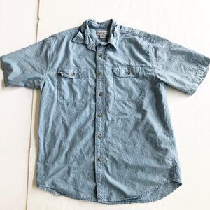 CARHARTT Short Sleeve Chambray Blue Denim Button Down Casual Shirt Mens Large