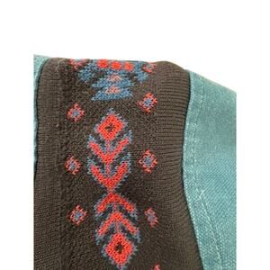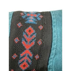 The "CARHARTT" Vintage Thermal Lined Firm Duck JRO 455 Teal Blue AZTEC Jacket in size L is a stylish and functional bomber jacket for men. Made by Carhartt with a cotton outer shell and polyester insulation, this jacket is perfect for colder weather. It features a lined interior, collared neckline, elastic waist, pockets, thermal properties, and wind-resistant design, making it a versatile and practical choice for outdoor activities or everyday wear. The teal blue Aztec theme adds a touch of flair to this classic piece of outerwear....1994-1995 USA UNION MADE! 28" Top to Bottom x 23" Pit to Pit