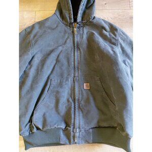 CARHARTT Vtg Green Work Wear Hooded Quilted Lining J130 Mos Jacket Size XL