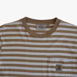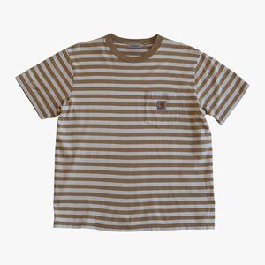 CARHARTT WIP | 100% COTTON "SCOTTY" NEUTRAL BEIGE WHITE STRIPE POCKET T-SHIRT