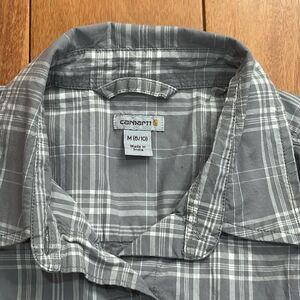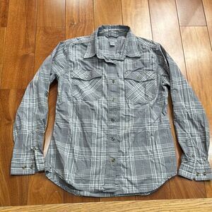 CARHARTT Woman Rugged Flex Button Plaid Shirt Cotton Stretch Long Tab Sz (8-10) in excellent condition.