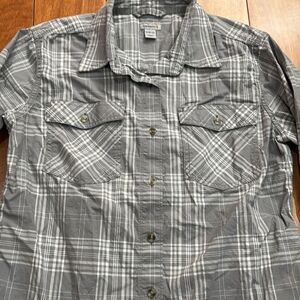 CARHARTT Woman Rugged Flex Button Plaid Shirt Cotton Stretch Long Tab Sz (8-10)