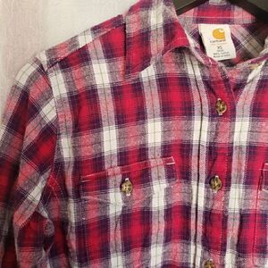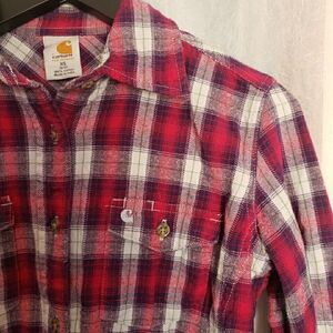 CARHARTT Women's Size XS Button Down Collared Pink Plaid Casual Shirt Flannel