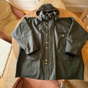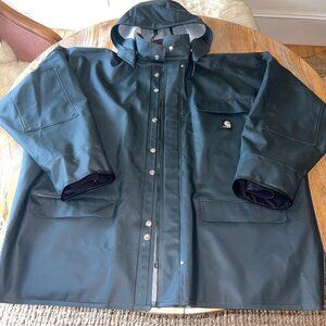 CARHARTT heavy duty rain coat w/removable hood/corduroy lined collar/XL