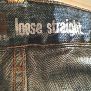 Loose straight jeans. 5 pocket styling. SZ 42 x 30. Excellent Preowned Condition. No stains or tears.