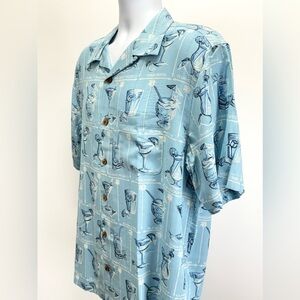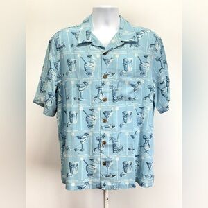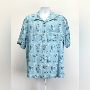CARIBBEAN BLUE Men's cocktail pattern Silk Blend Button Down Shirt size L