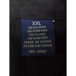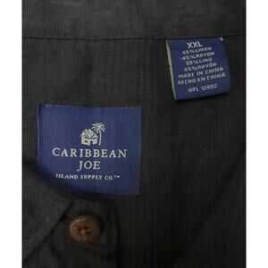 CARIBBEAN JOE Black Linen Blend Patterned Button Up Short Sleeve Shirt Size XXL