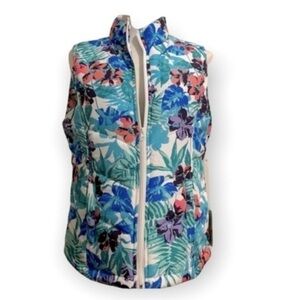 CARIBBEAN JOE jacket WHITE VEST WITH TROPICAL Floral zip vest NWT Sz small