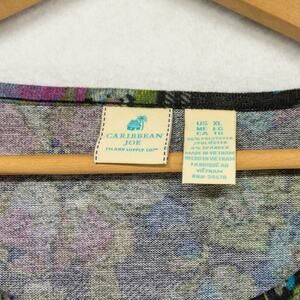 Look stylish and comfortable in this Caribbean Joe XL black floral top sweater. The tight-knit sweater features 3/4 length sleeves and a round neckline, making it perfect for travel, casual outings, workwear, or business meetings. The polyester and spandex blend material makes it soft and machine washable for easy care. This classic fit sweater is ideal for women who want to stay warm during the winter, fall, and spring seasons. The sweater is designed with a beautiful floral pattern and is available in size XL. It is a plus size and is suitable for those who do not want to personalize the sweater. NWT. Length 29", pit-pit 23"
