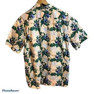 CARIBBEAN R&Y Shirt Short Sleeve Camp Hawaiian Parrot Floral Cotton Sz Large $69