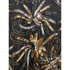 CARINA - Silver & gold sequin formal jacket long sleeve, open front, size large.