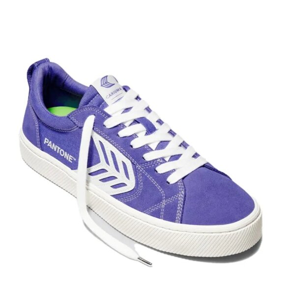 CARIUMA Catiba Pro Skate Sneakers in the exclusive Pantone "Very Peri" colorway. Featuring a premium blend of suede and canvas, contrast tread, and an ivory logo detail, these eco-friendly low-tops deliver both performance and bold design. Size M9.5 | W11. New in box with dust bag. 100% Vegan Insole.