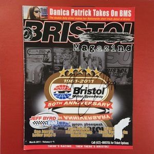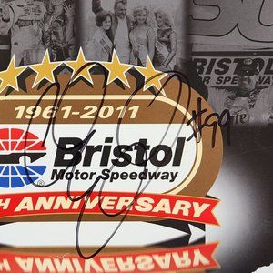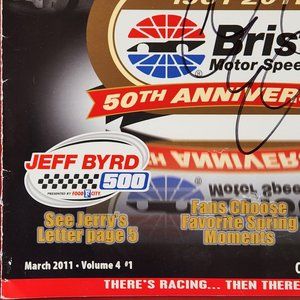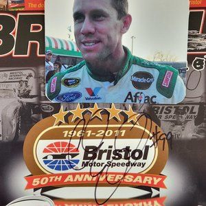 Authentic Carl Edwards signature on a March 2011 Bristol Motor Speedway 50th Anniversary program cover.