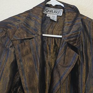 linen/silk blend lightweight blazer in great pre-owned condition. side pockets and collar. please refer to photos for more details and measurements. smoke-free and pet free home.