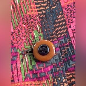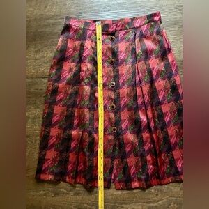 CARLISE vintage 100% silk skirt pleated pink houndstooth button front sz 12 MINT