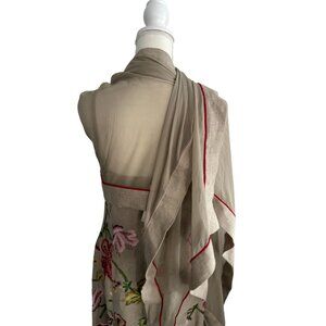 Elegant 100% linen dress with intricate floral embroidery, complemented by a matching scarf shawl. Perfect for elevating your wardrobe with a touch of sophistication and style.