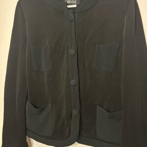CARLISLE Black Sweater Blouse Blazer Button Front Pockets Chic Retro Glam US 14 Career