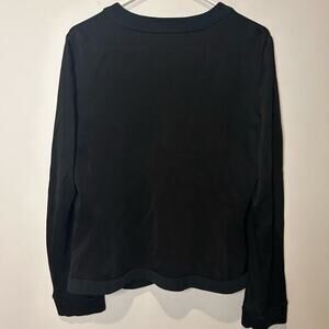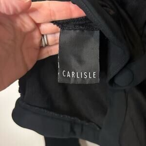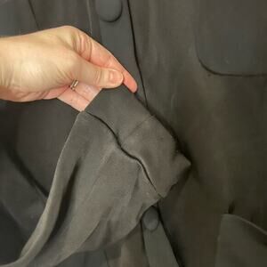 Beautiful Carlisle top. Could be top, sweater, blazer. Wear open or closed. Two toned black with four pocket and big button detail. Soft and slinky almost material.