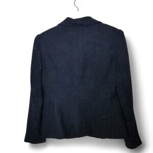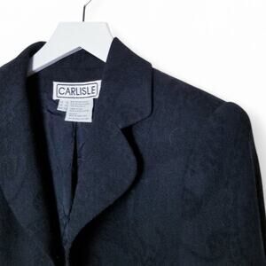 CARLISLE Blazer Wool Rayon Blend Black 3 Button Tux Collar Jacket - Size 8. Subtle floral jacquard pattern.