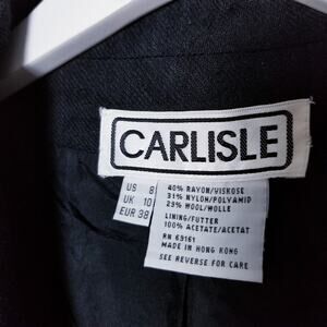 CARLISLE Blazer Wool Rayon Blend Black 3 Button Tux Collar Jacket - Size 8