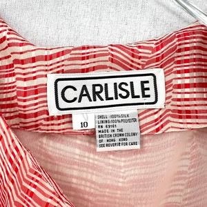 CARLISLE Vintage Shirt Womens 10 Red Cream Silk Short Sleeve Round Neck top
