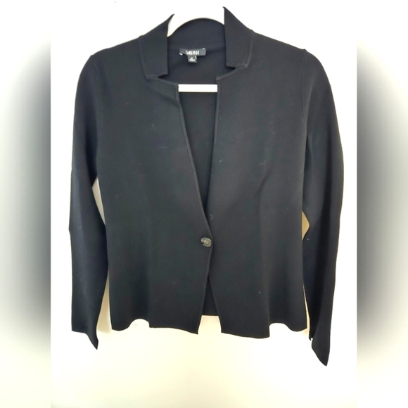 CARLISLE black knit long sleeve collared cardigan with one button | small