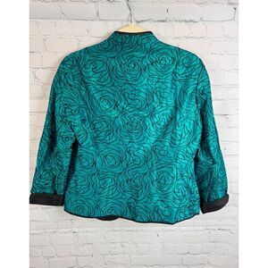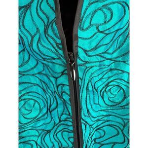 CARLISLE blue turquoise silk embroidered full zip blazer jacket size 10