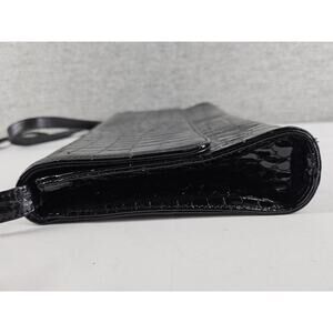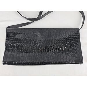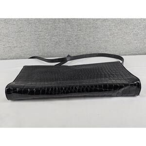 CARLOS FALCHI VINTAGE BLACK CROC HANDBAG W/ SNAP CLOSURE SIZE 12.5" LENGTH X 6" HEIGHT