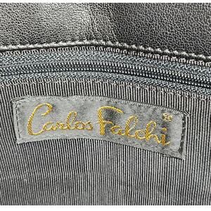 Description: Elevate your accessory game with this timeless Carlos Falchi handbag. Featuring a sleek rectangular silhouette and a rich black croc-embossed leather exterior, this vintage piece exudes understated elegance. The long strap offers a comfortable 23" drop, perfect for shoulder or crossbody wear.