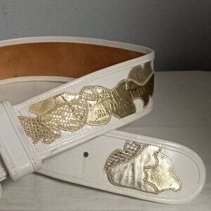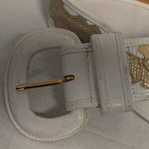 ❤️CARLOS FALCHI Wide White with Gold Snakeskin Belt Size Medium