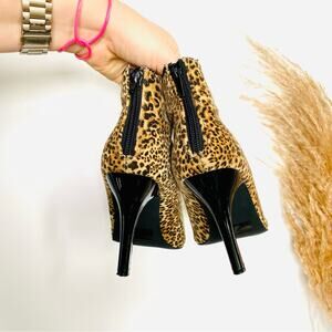 CARLOS SANTANA Black Animal Leopard Print Stiletto Heel Ankle Boot Booties 9.5