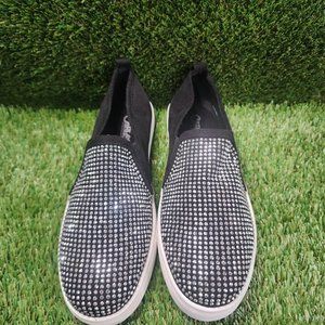 Size: 7.5 | CARLOS by Carlos Santana BRAND NEW Black Canvas sneaker slip-ons with Silver Studs