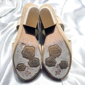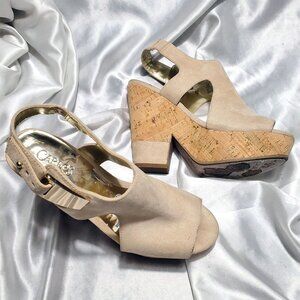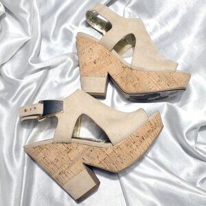 CARLOS tan suede cut out cork platform heels BRISTOL SZ 8.5