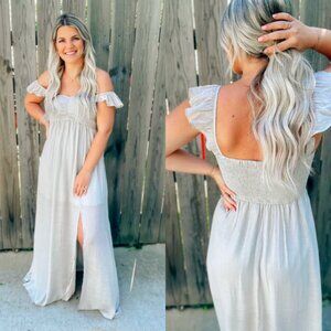 ☀️ CARLY JEAN LOS ANGELES Tulip Light Purple Lilac Maxi Dress Smocked Dress Slit