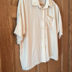 CARLY JEAN LOS ANGELES Frayed Hem Short Sleeve Button Down Shirt
