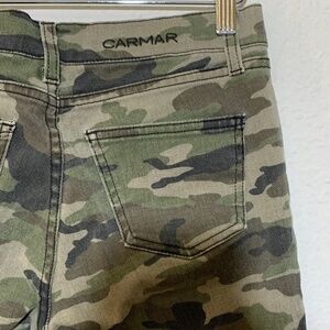 ❤️ CARMAR Camo Raw Hem Mid Rise Skinny Jeans