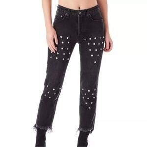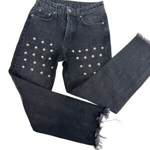 CARMAR Emelia Sturgis Spiked Straight Leg Frayed Goth Jeans Black Size 25
