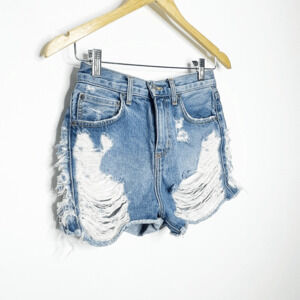 CARMAR High Rise Destressed denim shorts medium wash stretch thrashed SHORTS 26