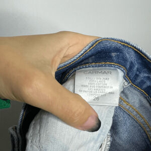 CARMAR High Rise Destressed Jeans medium wash stretch thrashed SHORTS 26