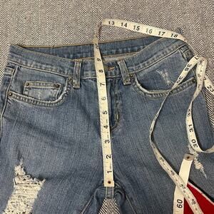 Ryan Jean in Kaveri is a slim fit, stretch, mid rise jean, with shredding and star patches through legs.