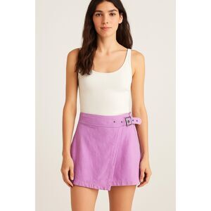 CARMAR Lavender Linen Mini Skirt with Belted Waist – Size Small