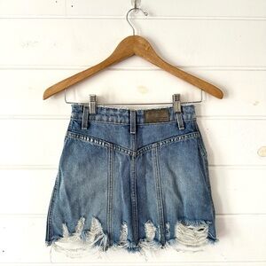 CARMAR Los Angeles Blue Jean Denim Distressed Mini Skirt
