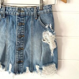 CARMAR Los Angeles Distressed Blue Jean Denim Button Front Mini skirt Sz 24 (0)