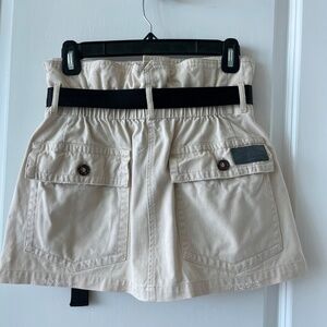 Level up your streetwear game with this beige high-rise mini skirt by CARMAR. Designed with utility-inspired details and distressed touches, it features a contrast black buckle belt and oversized back pockets. The look is equal parts edgy and functional.