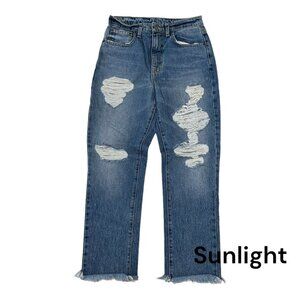 CARMAR Women SZ 26 Distressed Denim Jean High Rise-Straight leg-Raw Hem- Blue