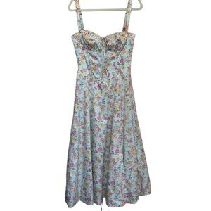 CARMEN Bustier Sundress – Pale Blue Meadow Print – Size L – NWT