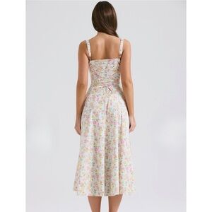 Romantic and feminine, the CARMEN Bustier Sundress in Pale Blue Meadow Print is a timeless warm-weather favorite. Crafted from breathable cotton with a flattering bustier-style bodice and full midi skirt, it features adjustable straps and is designed to fit A–C cups. Perfect for weddings, brunch, vacations, or garden parties.
