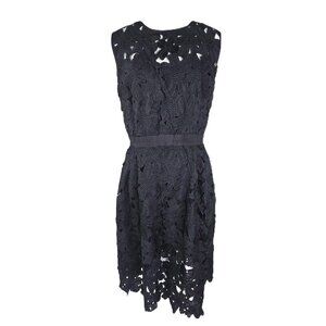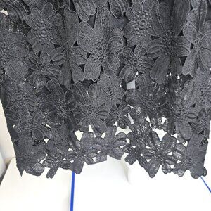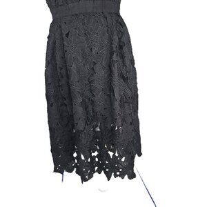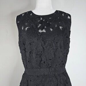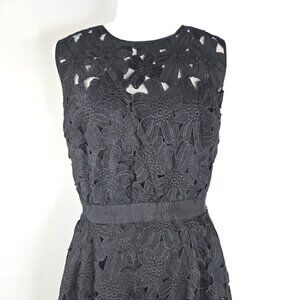 CARMEN MARC VALVO Black Floral Crochet Lace Sleeveless Fit Flare Midi Dress