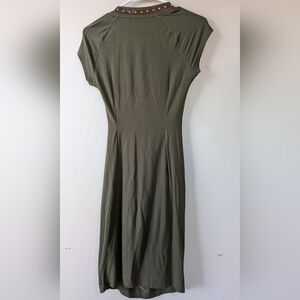 CARMEN MARC VALVO Dress, Faux Wrap, Olive Green, Brown Harness Trim, Size S
